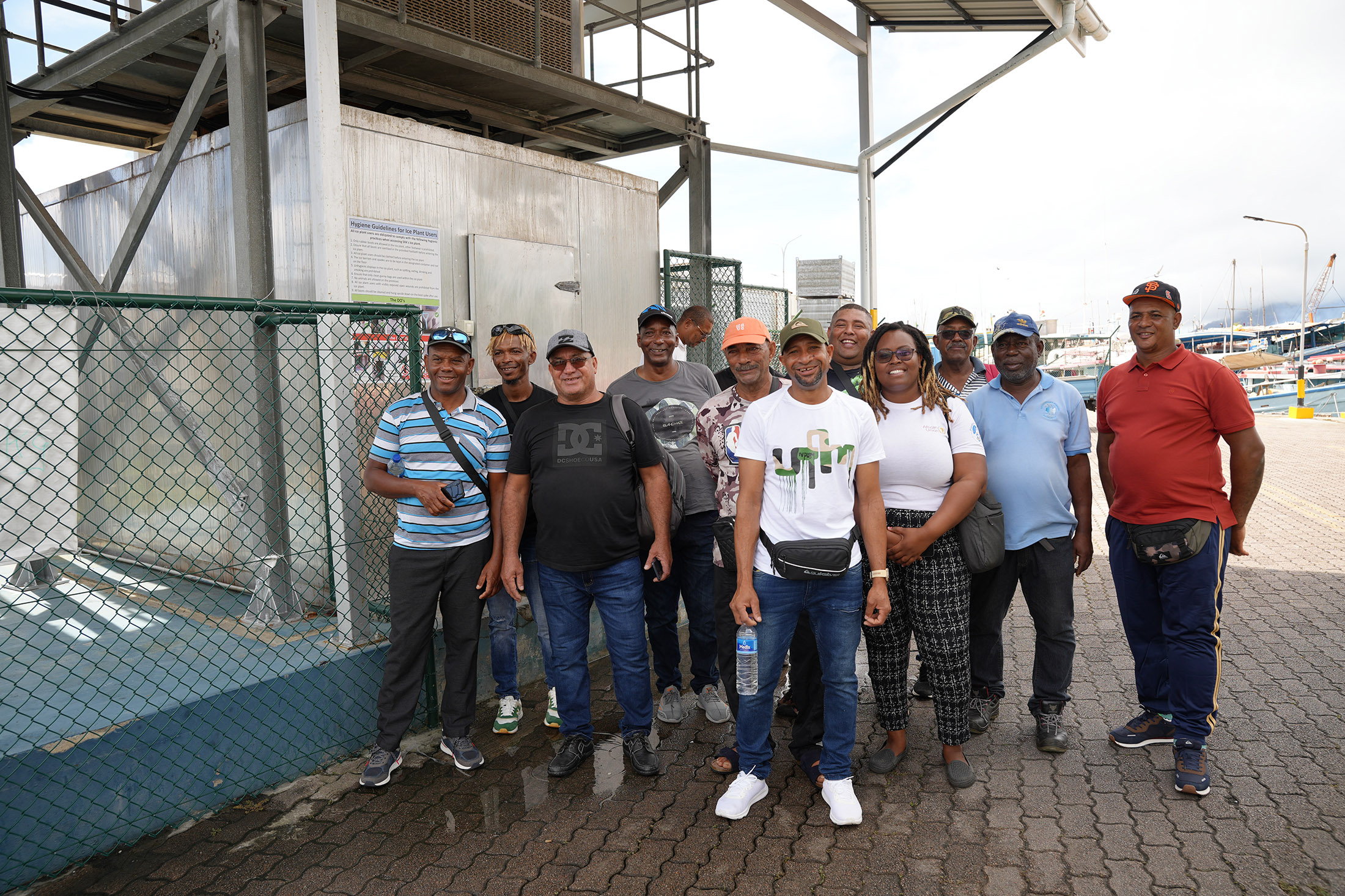 During their visit to SFA, the Rodrigues fishers were given an insightful tour of the Victoria fishing port, where they had the opportunity to meet and exchange experiences with local fishers. They observed firsthand the operational aspects of Seychelles’ fishing industry and enjoyed lively discussions about various fishing practices. During the tour of the port, they got a chance to witness one of SFA’s ice plant facilities in operation.