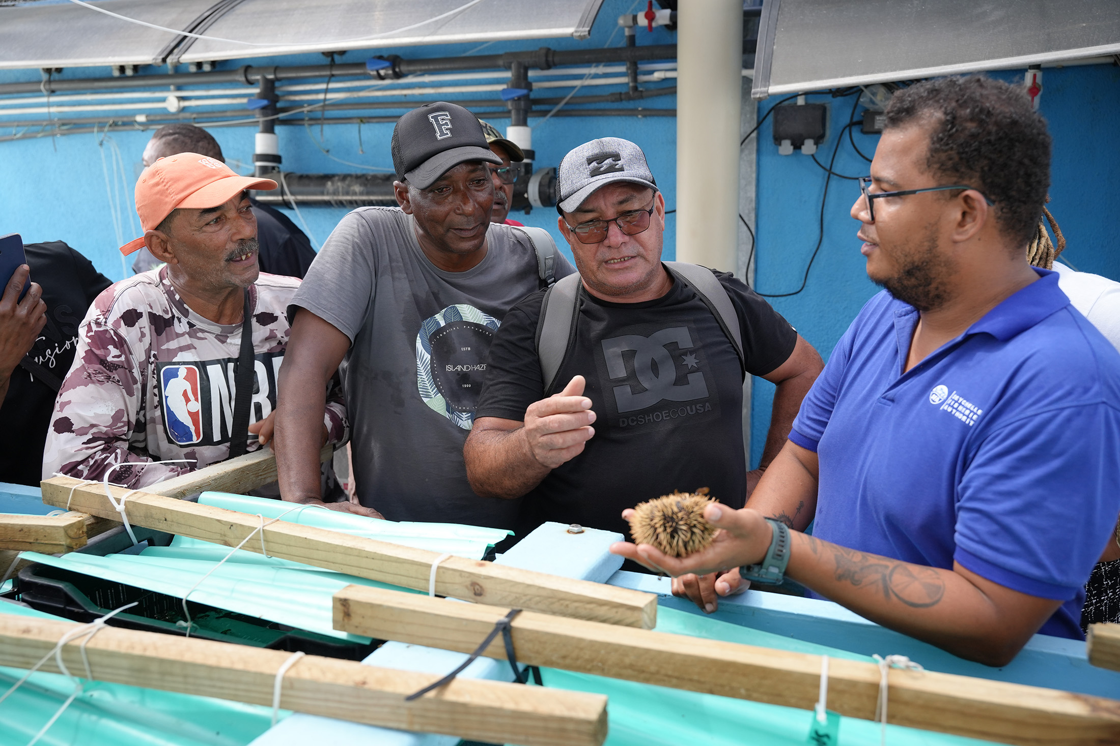 Continuing their immersive experience, the fishers visited the port at Providence, gaining a closer look at Seychelles’ semi-industrial fishing infrastructure. They also toured the aquaculture facilities, gaining insights into sustainable fish farming practices that could contribute to diversifying their local fisheries.